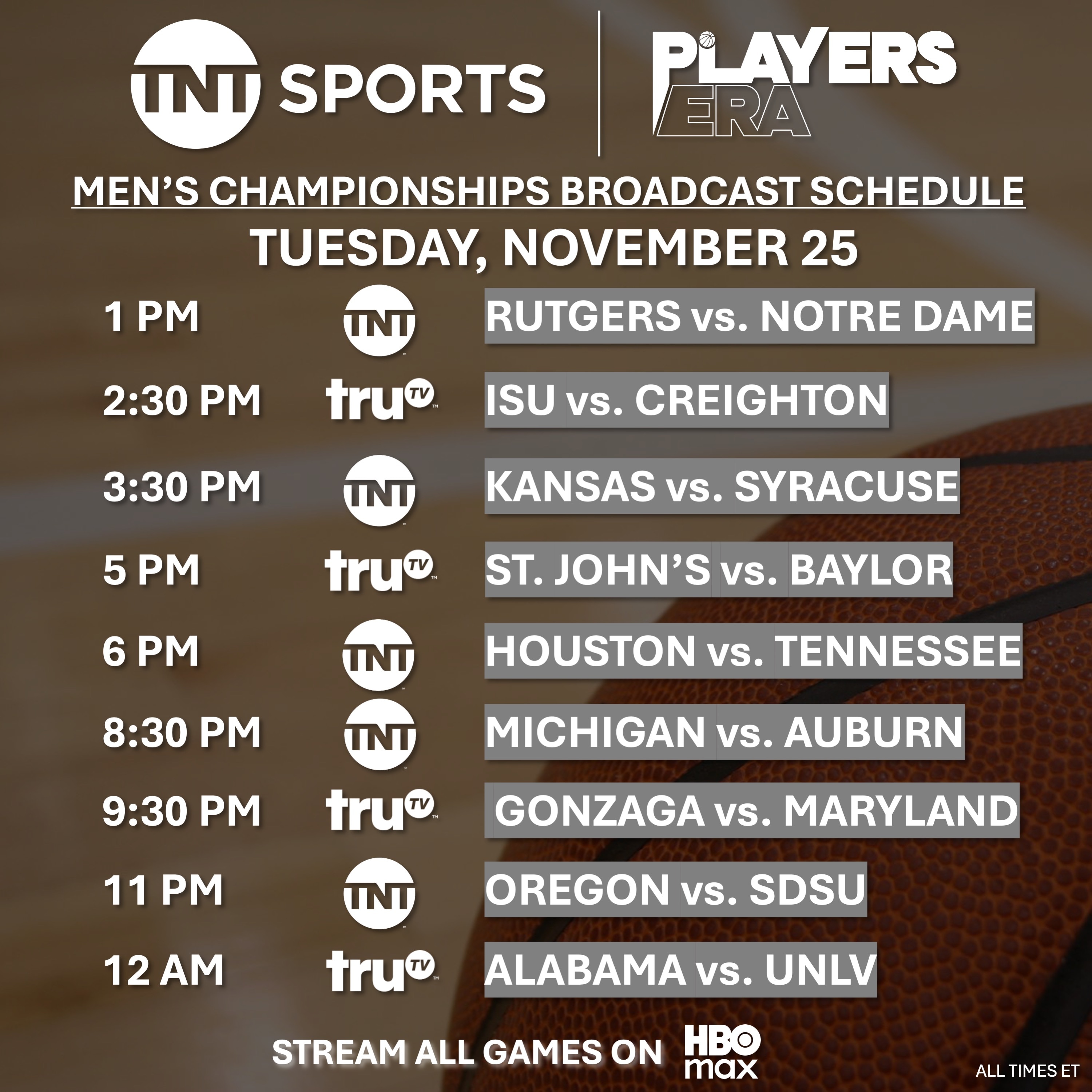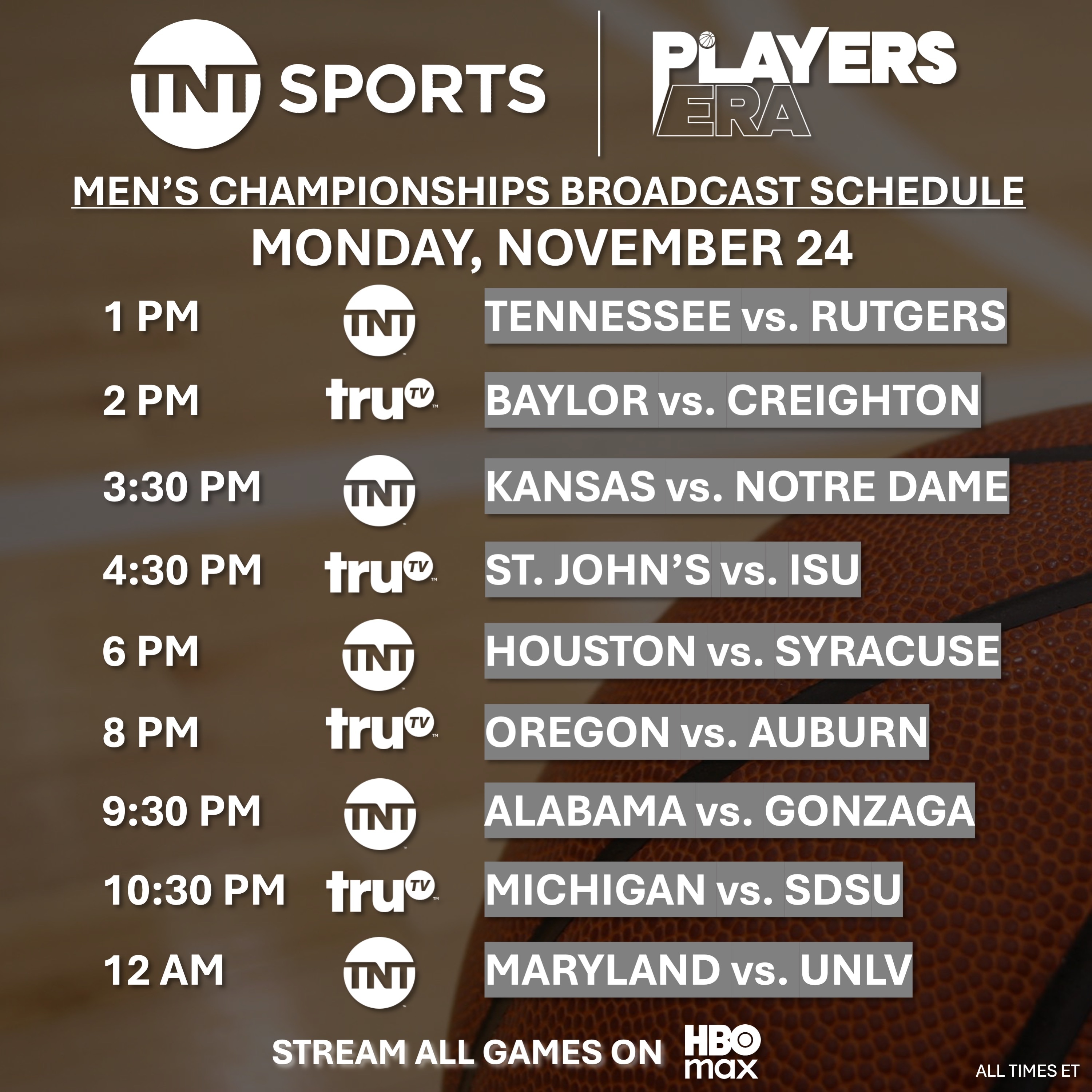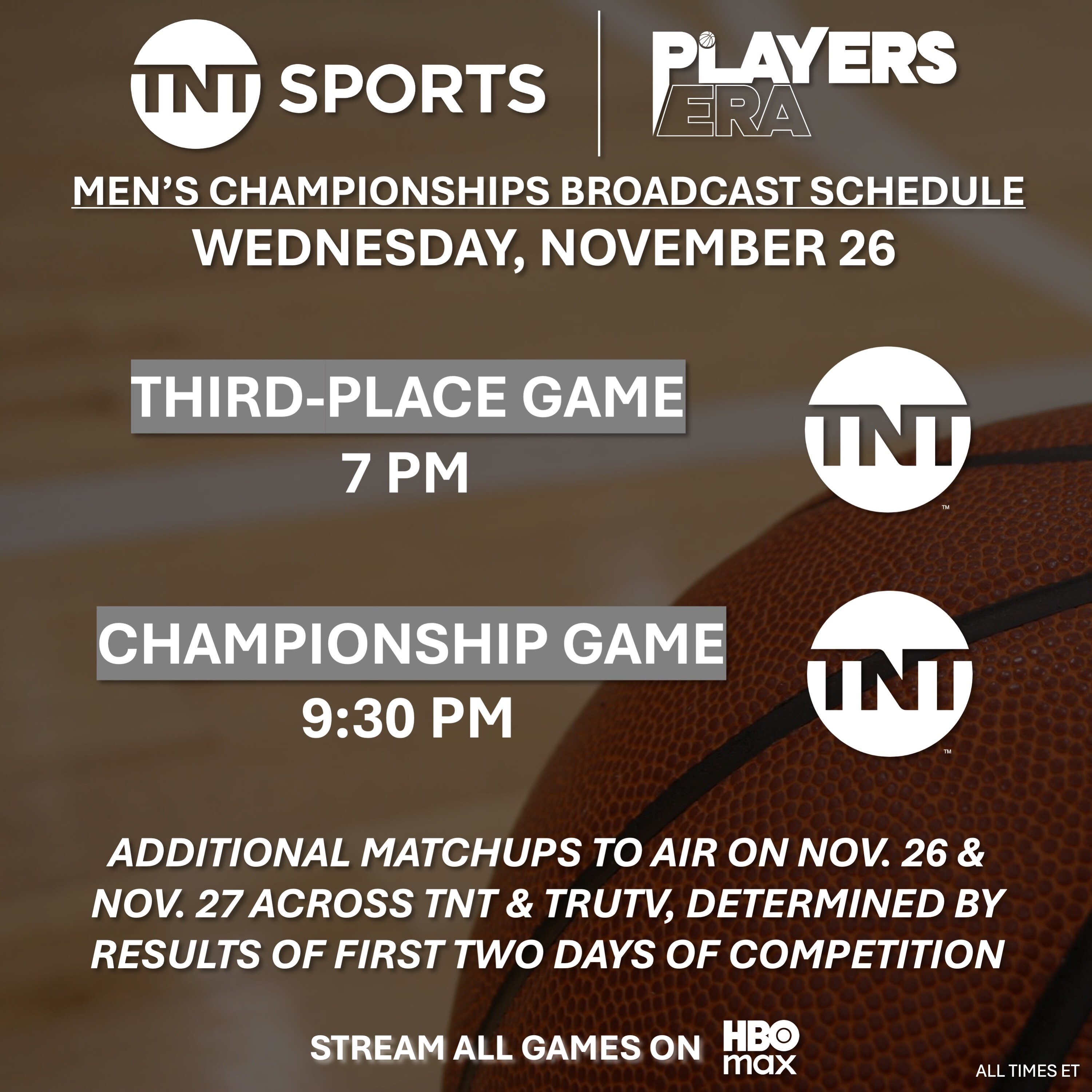 All games will be broadcast on TNT, truTV and HBO Max.