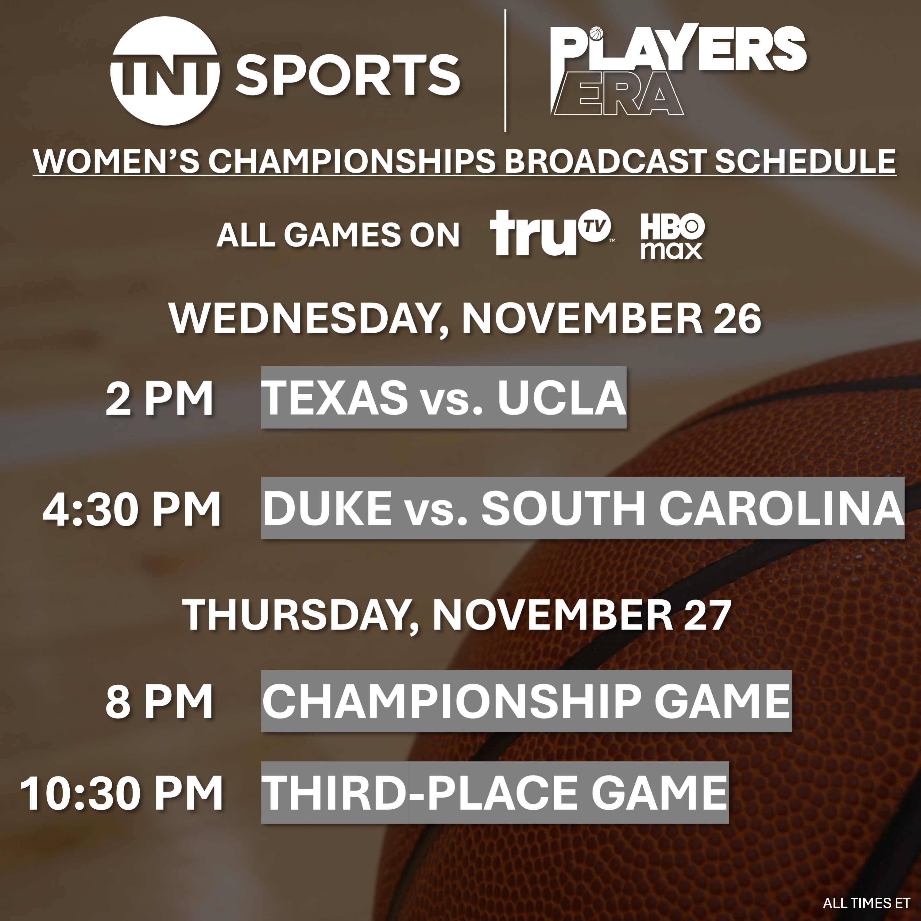 The four-team women's tournament includes South Carolina, UCLA, Texas and Duke.