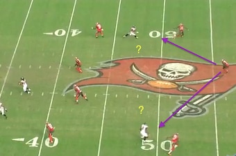 But it was Goldson's position nearer the line that had Campbell confused. The free safety soon started to rotate deep pre-snap: