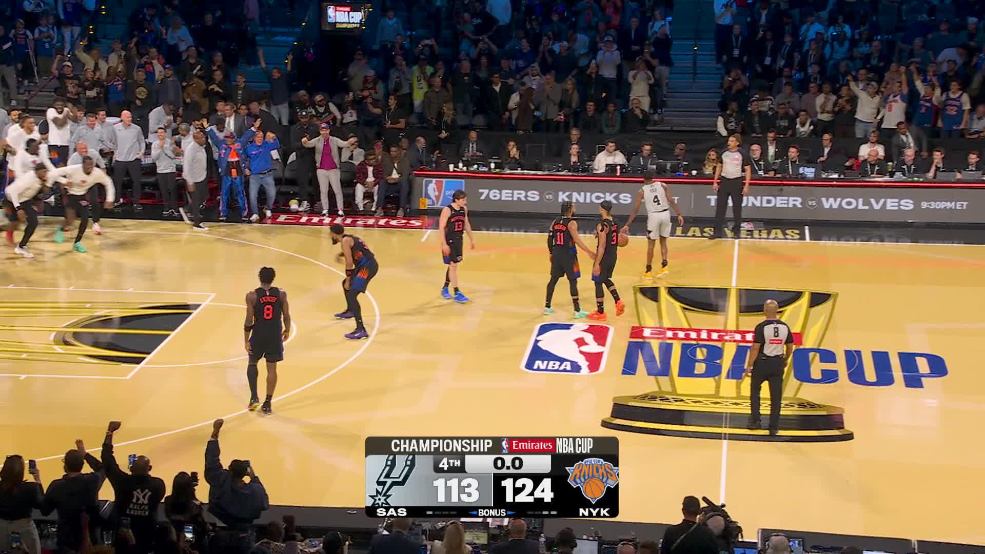 The Knicks secured their first-ever NBA Cup title on Tuesday night when they beat the San Antonio Spurs 124-113 in the final, which was held in Las Vegas.