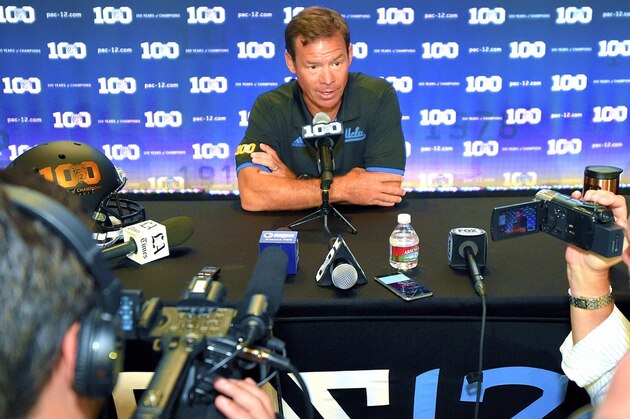 But Bruins head coach Jim Mora has repeatedly said he won't name a starting quarterback prior to fall camp, and he went on the offensive in his time with media Thursday: