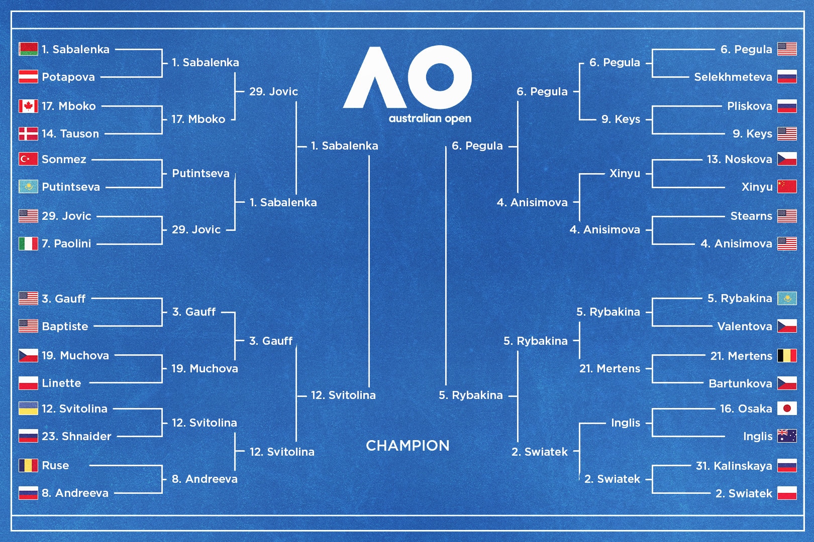 Rybakina has been equally as dominant in Melbourne with no set defeats and seven set victories of three games or more.