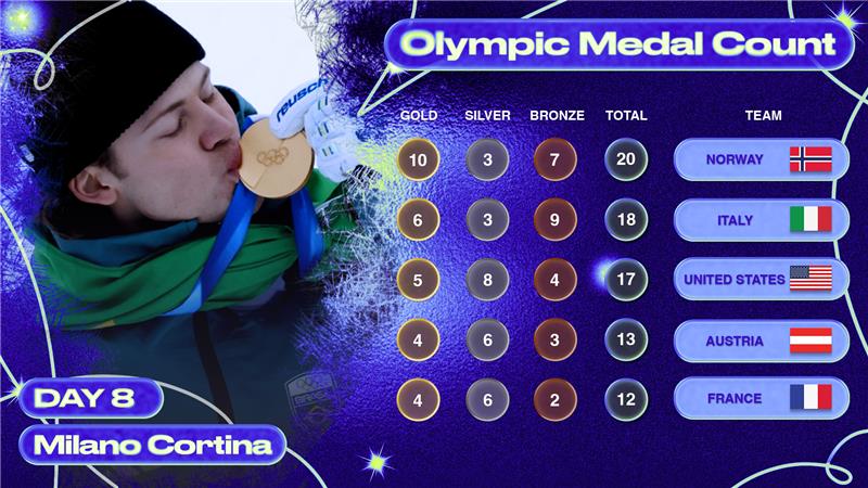 Olympic 2026 Medal Count, Final Tally, Winners from Day 8 Early Events