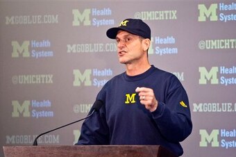 ANN ARBOR, Mich. — With all due respect to the reporters in attendance, the highlight of Michigan's media day didn't stem from inquiries into the Wolverines quarterback controversy, questions about their practice schedule for the remainder of the month or even Jim Harbaugh's own unique spin on the start of fall camp.