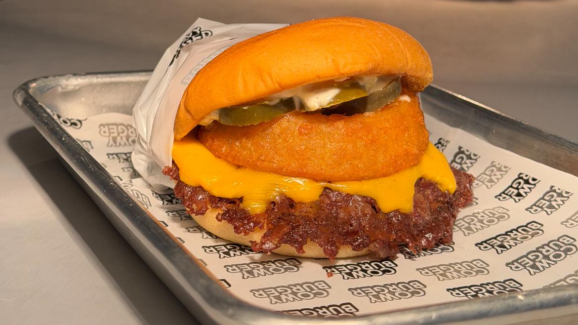 Cowy Burger will serve a "Hot Lap Smash," which is a smash burger with onion rings and jalapeños.