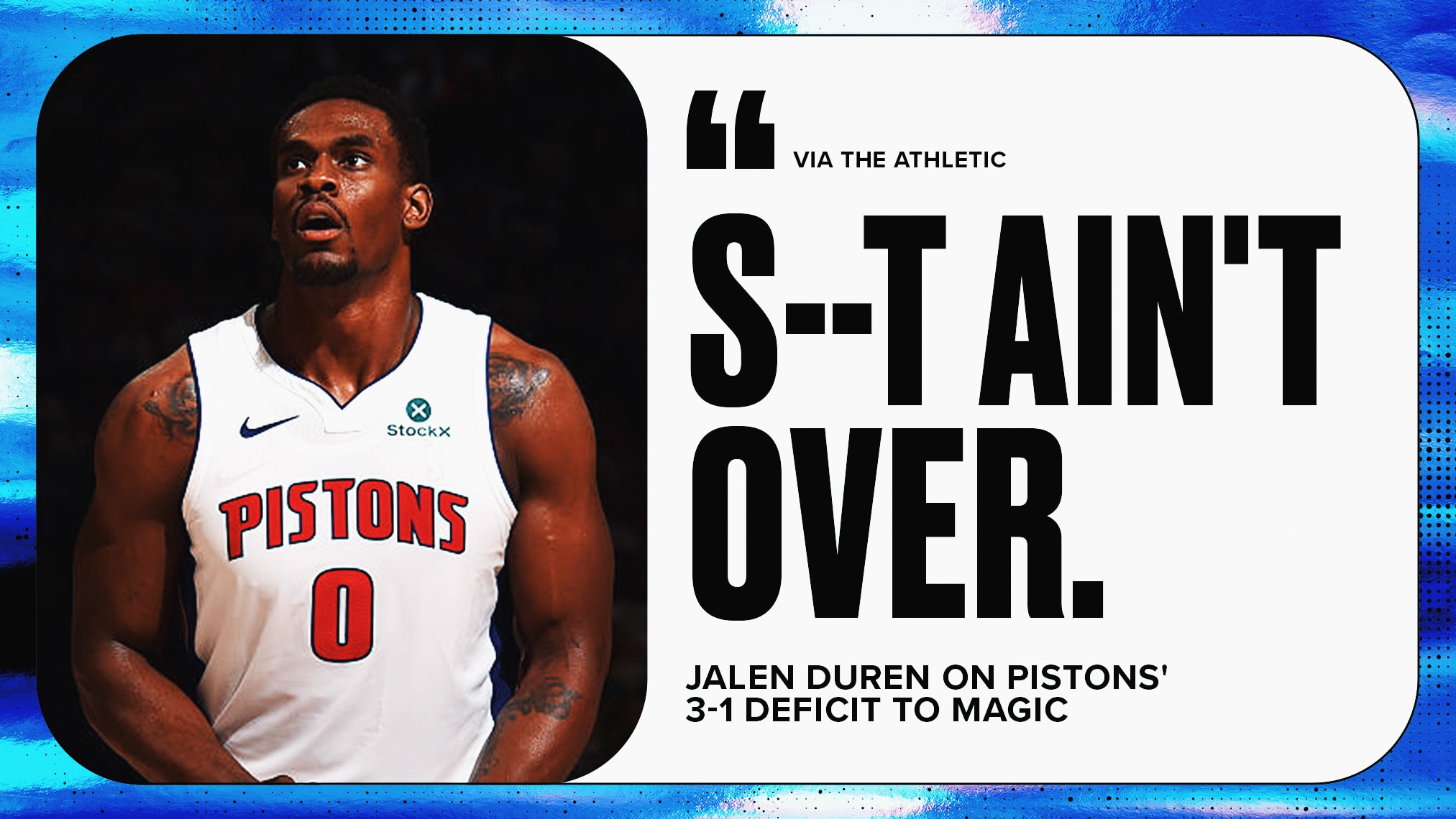 Detroit Pistons star Jalen Duren is determined to help the team claw its way back from a 3-1 series deficit to the Orlando Magic in the 2026 NBA playoffs.