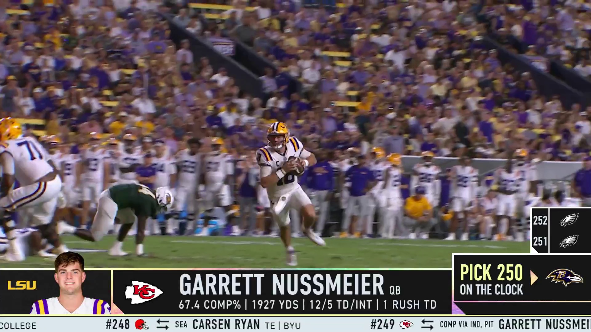 There wound up being nine quarterbacks selected ahead of Nussmeier. Athan Kaliakmanis of Rutgers and Behren Morton of Texas Tech were taken before his name got called.
