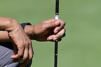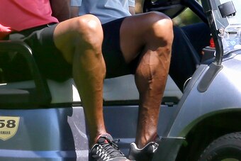 On Monday, he was photographed playing a round with bandages on his hands, presumably from club friction.