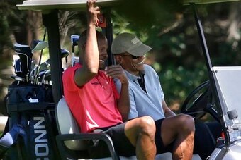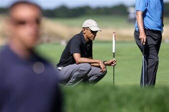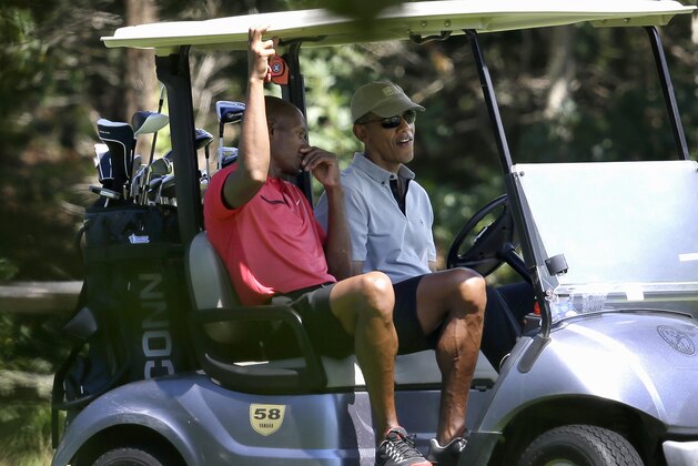 As for the president, the Daily Mail's Kelly McLaughlin and Evan Bleier report Obama's outing with Allen and Mourning was just the latest of his golf-heavy Martha's Vineyard vacation.