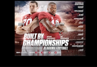 Auburn's 2015 schedule poster checks all the boxes for the standard fare: highlighted players, a strong color scheme, a packed stadium in the background, the program's most recognizable face (coach Gus Malzahn) displayed prominently and a bold slogan in sleek ghost lettering.