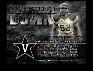 The Commodores have continued with this theme on the schedule poster but taken it another step further by making it seem as if sophomore linebacker Nigel Bowden is either summoning the seas to help Vandy's defense—which could use the help, having allowed 33.3 points per game during a 3-9 season in 2014—or is about to get obliterated by a massive wave.