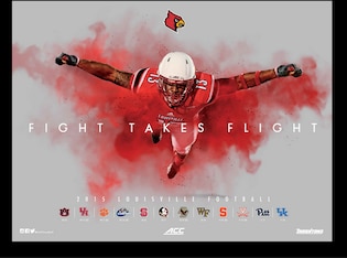 Burgess is flying right toward you as you look at Louisville's 2015 schedule poster, leaping over a "Fight Takes Flight" slogan that works perfectly. It's a bold statement and one that goes great with the freakishly large bird emblazoned on the side of the helmets Louisville is set to wear in its opener Sept. 5 against Auburn in Atlanta.