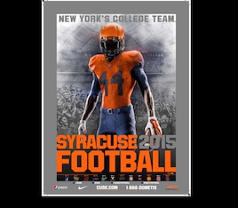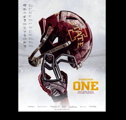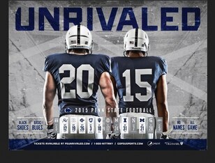 Penn State recently went back to the old tradition of not having names on jerseys, and this is highlighted on the poster, as a pair of unidentified players wearing Nos. 20 and 15 have their backs turned to show they're nameless.