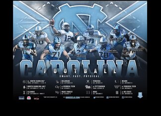 North Carolina's 2015 football schedule poster has a lot of the stock, boilerplate features that many posters have. There's the presence of several notable players in action poses, the large school emblem and all the requisite schedule information.