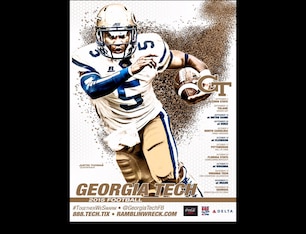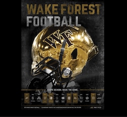 As mentioned previously, the gloved-hand-holding-up-the-helmet image is a common one on schedule posters in 2015, but the gold standard (literally) is the one Wake Forest has on display. There's something about the shine that comes off that chrome dome that makes us forget the Demon Deacons had a very bad season last year and put together one of the worst rushing performances ever.