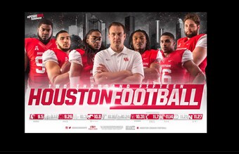 Flanked by a selection of Cougars standouts who have this team that's expected to contend for a division title in the American Athletic Conference ready to go, Herman looks all business.
