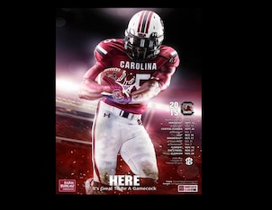 Muschamp didn't appear on the last three posters during his time at Florida, last popping up there in 2011, but now he's prominently displayed at his new school.
