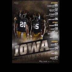 While many schools look to highlight some of their top players in their posters, others opt for the generic uniform route and feature someone modeling a No. 15 jersey. Iowa went one step further and features two guys who make up the entire year that we're currently in.