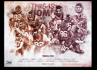 The first thing anyone associates with Virginia Tech football is Frank Beamer, the head coach who has been at the helm since 1987. Yet Beamer isn't featured in the Hokies' 2015 schedule poster, which seems like an odd choice for someone so synonymous with a program.
