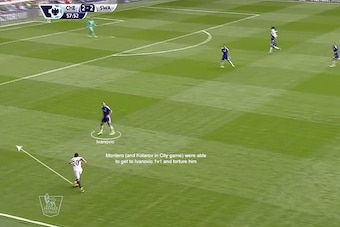 There's no help ahead of him, no one to play a one-two with and overlap and no one to attack Aleksandar Kolarov. City can play deep and narrow, stack numbers in the central areas and nullify any attacks.