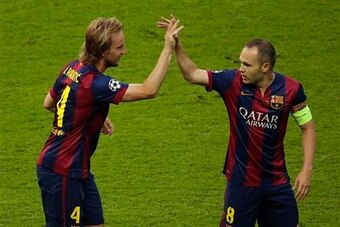 Rakitic is the one Barcelona midfielder who last year consistently broke from deep to run beyond the forwards. It's the reason he managed so many goals at Sevilla (and still scored comparatively well for a Barca middle player) last term. He can make frequent runs across the face of Atletico's defence, trying to link with one-touch passes and runs through the centre or else simply looking for a lofted pass beyond the entire back line, especially at the moments when Lionel Messi drops deep and Luis Suarez drifts slightly wider.