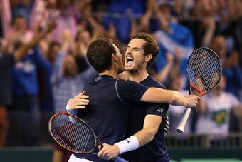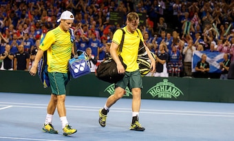 Murray may as well have strung his team’s rackets and carried all the equipment. Team Australia no doubt saw enough of the Scottish superstar and heard enough of Glasgow’s rabid fans. Murray won both singles matches in straight sets over Thanasi Kokkinakis and Bernard Tomic, and he paired up with brother Jamie for a thrilling five-set victory on Saturday. (More on that in the next slide.)