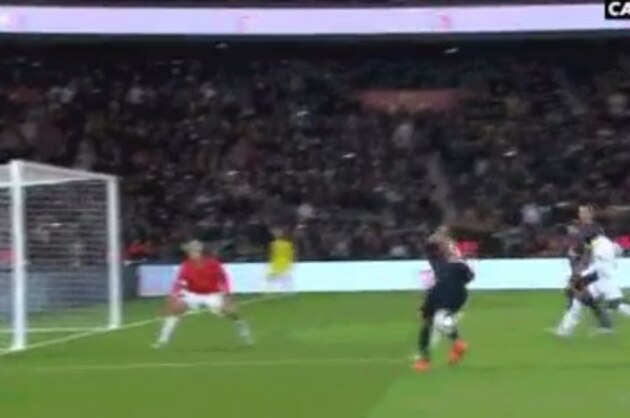 With just the goalkeeper to beat, Cavani (who has been in good form this season) uncharacteristically whiffed on his shot, fell over and then kicked the ball out of play, even with Marco Verratti chasing behind him.