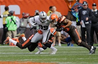 Oakland was on its heels in the midst of a late Browns comeback bid, but that last-ditch effort was thwarted by Charles Woodson’s game-sealing interception.