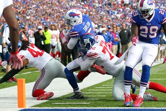 Luckily for the Giants, some of their players kept their heads. Kerry Wynn and other defenders delivered some red-zone stops as Tyrod Taylor tried to scramble and option his way into the end zone. Rashad Jennings rumbled 51 yards for a touchdown after a third-down swing pass and a nifty start-stop juke of the first tackler. The Bills pitched in with a missed field goal late in the third quarter and a dumb Richie Incognito penalty to negate a touchdown.