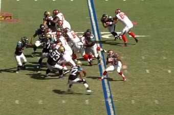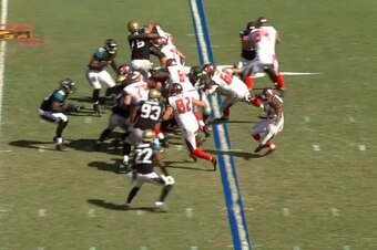 Martin turned a would-be tackler into his own personal bean bag at the end of a 13-yard run Sunday against the Jacksonville Jaguars. And amazingly, his stiff-arm toss wasn't even the part of the play that makes you laugh uncontrollably even after multiple viewings.