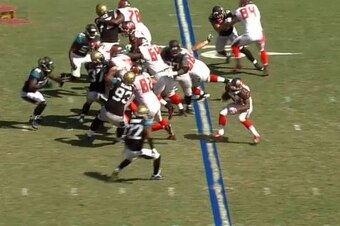 A counter run was called, with the Buccaneers offensive line blocking to the right. Then, with the play flowing in that direction, Martin bounced left and was one-on-one in the open field against Jaguars cornerback Aaron Colvin. The play was designed to create that exact scenario, with Buccaneers offensive coordinator Dirk Koetter aiming to optimize Martin’s elusiveness.