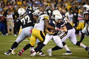 The Steelers were able to sack an opposing quarterback again, taking down the Chargers' Philip Rivers twice, hitting him another three times and hurrying him 23 times. The latter metric was led by defensive end Cameron Heyward, with nine, and linebacker James Harrison, with six, according to Pro Football Focus.
