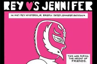 He's drawn to the wrestling as much as the real-life stories outside of the ring. Hearing the rumor that Rey Mysterio was dating Jennifer Aniston (a rumor Mysterio denied in his autobiography, Behind the Mask), sparked enough interest in Brown to get out his art supplies.