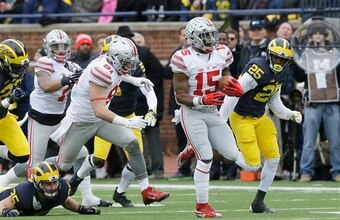 It stems from the success in the run game. Elliott only got 12 carries (for 33 yards) against the Spartans. Saturday against Michigan, Elliott more than doubled those carries (with 30) for 214 yards and two touchdowns. Quarterback J.T. Barrett added another 139 yards and three TDs on the ground. That opened up more passes downfield for Michael Thomas and Jalin Marshall. The Buckeyes don’t have a great deep threat, but it’s a lot easier to go vertical when defenses have to respect the run.