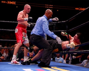 By the championship rounds, Huck seemed positioned to escape with a close, hard-fought defense. But then Glowacki sent the champion tumbling to the canvas in Round 11, with a brilliant right hook. Huck made it back to his feet, but a follow-up barrage knocked him through the ropes.