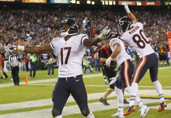 He caught eight passes for 147 yards with one touchdown in Week 6 against Detroit, and he followed that up with back-to-back 10-catch performances against the Minnesota Vikings and San Diego Chargers. Jeffery caught just three passes for 23 yards against the Rams in Week 10 before missing Chicago's Week 11 contest against Denver.