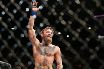 As we can see here, she's experienced McGregor's antics first hand, as he jumped over the cage to get in Aldo’s face after beating Dennis Siver back in 2014: