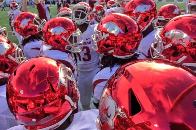 Arkansas Razorbacks Don Shiny Chrome Helmets for Liberty Bowl vs. Kansas State