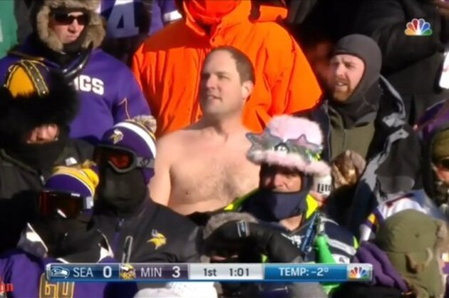Crazy Fan at Seahawks-Vikings Game Goes Shirtless in Subzero Temperatures