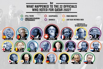 There were 22 men on FIFA's governing Executive Committee who made the decisions to give the World Cup-hosting duties to Russia in 2018 and Qatar in 2022. Thirteen of those men have now either pleaded guilty, been arrested, suspended or are under official FIFA investigation for bribery, corruption or collusion