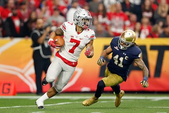 There will be questions about what Miller can do versus what he was asked to do at Ohio State. Playing in the H-back role for the Buckeyes, Miller saw the ball come his way on designed plays like handoffs on jet sweeps and short passes on screen plays. His ability to separate in one-on-one situations is untested.