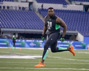 A 5-technique defensive end straight out of central casting, Buckner has the height, weight, length (34 ⅜-inch arms) and hand size (11 ¾”) to make scouts drool. With that size, he impresses with short-area quickness, flexibility and agility in space. Watch Buckner work a spin move or swim an offensive guard and you see just how special of an athlete he is.