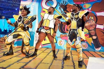 Any act as ridiculous and awesome as The New Day is sure to have a ridiculously awesome entrance, and the WWE tag team champions did not disappoint Sunday night. They entered the arena through an enormous box of Booty-Os, while wearing Dragon Ball Z-inspired gear.