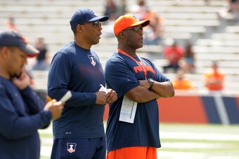 The scrimmage has concluded. Although Illinois has a few more spring practices remaining—critical hours it hopes to maximize—at the moment it can't locate its head coach.