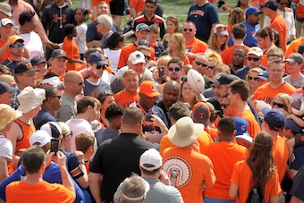 Different generations, the stars of Illinois from years past, are doing the exact same thing. More than 100 former players have made the trip to Champaign to see Smith's debut. As some of the current players walk off the field, they greet the former players and talk about the road ahead.