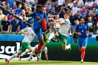 Although still not 100 per cent ideal, the 4-2-3-1 is a much better compromise. Introducing Kingsley Coman on the right, as Deschamps did at half-time against the Irish, Griezmann can move infield and play just behind Giroud.