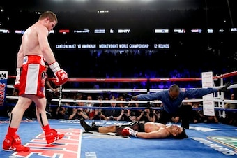 Canelo Alvarez, the lineal middleweight champion, and the fighter everyone wants to see face Golovkin next, did virtually the very same thing for his last title defense. Alvarez faced the small, fast and brave Amir Khan two months ago in a mismatch nobody wanted to see.