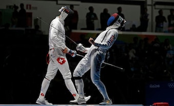 Gauthier Grumier, a favorite to win the gold medal for France, settled for bronze, defeating Switzerland’s Benjamin Steffen, 15-14.