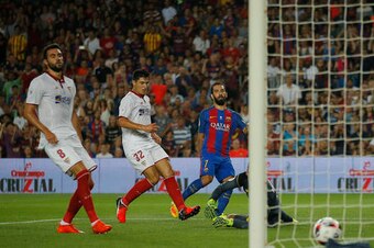 Former Sevilla player Aleix Vidal started at right-back for the Blaugrana, as Samuel Umtiti and Lucas Digne slotted into defence. Denis Suarez and Andre Gomes came in for their full debuts, whileย Munir and Turan operated with Messi in attack.
