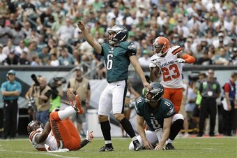 Jones showed he was excited for the return of real football with some booming punts and twice pinned the Browns deep in their own territory. Sproles had a nice 40-yard punt return. Waiver-wire claim Kamu Grugier-Hill made a great tackle on a fake punt in the first half.